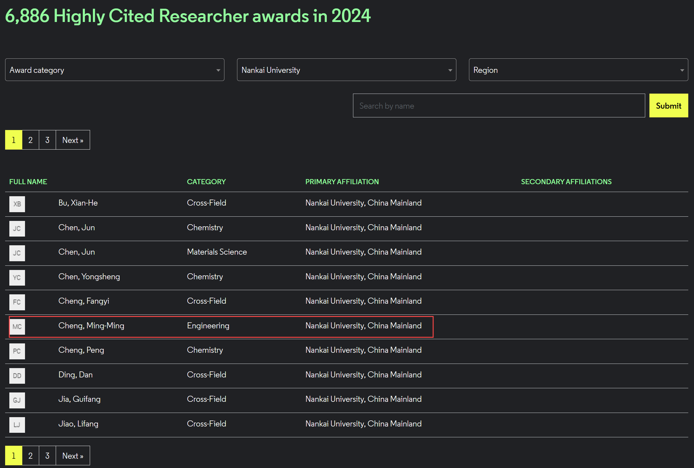 20241119日,科睿唯安(Clarivate)发布了2024年度全球高被引科学家”(Highly Cited Researchers)名单,遴选全球高校、研究机构和商业组织中对所在研究领域具有重大且广泛影响的顶尖科研人才。来自全球59个国家和地区的1200多家机构的6636名科学家入选2024年度名单。今年中国内地共1405人次入选。南开大学共22位教师上榜,其中2位来自皇冠网址-USDT皇冠 程明明、李重仪。
