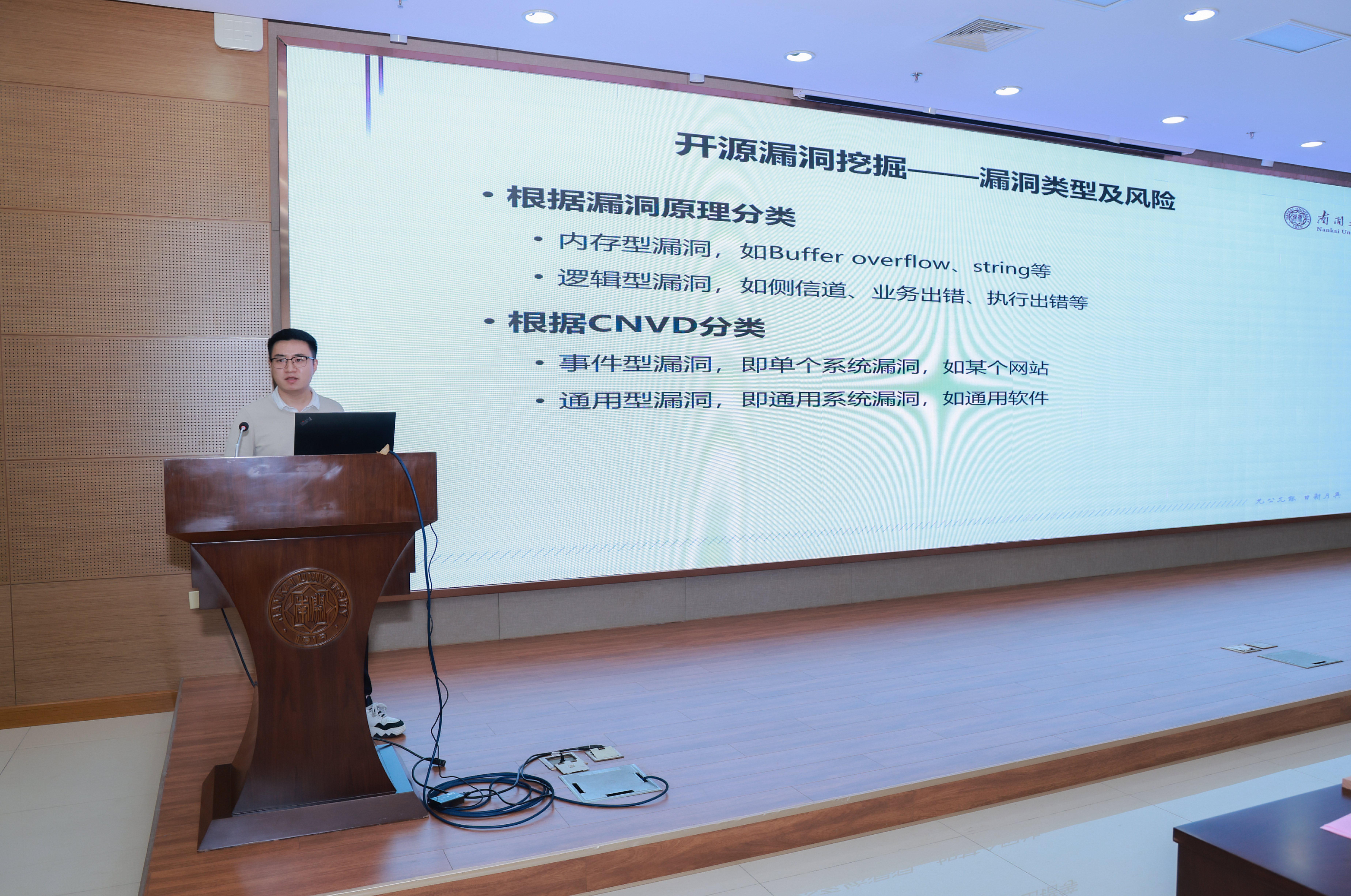 南开大学网络空间安全皇冠网址-USDT皇冠 教师徐思涵与李想副教授作为优秀指导老师代表,分享了原创开源软件、开源软件重写和开源漏洞挖掘的具体操作经验。他们结合实际案例,详细分析了如何高效开发软件、优化代码质量和探索漏洞挖掘。与会学生表现出浓厚兴趣,并积极参与互动讨论。